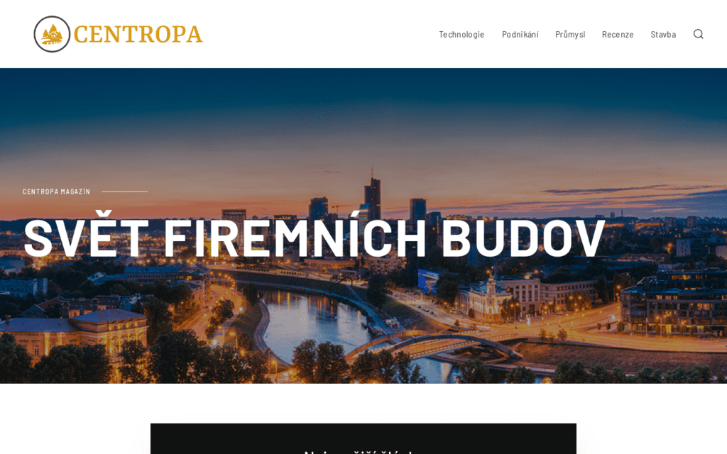 CENTROPA.CZ Odkaz na webové stránky: http://www.centropa.czKategorie webu: Technologie, Podnikání, Průmysl, Recenze, Stavba Autor: Jan Staněk Popis: Centropa Vás provede světem firemních budov s elegancí a grácií, která je ve světě internetových článků nevídaná. Předchozí Následující