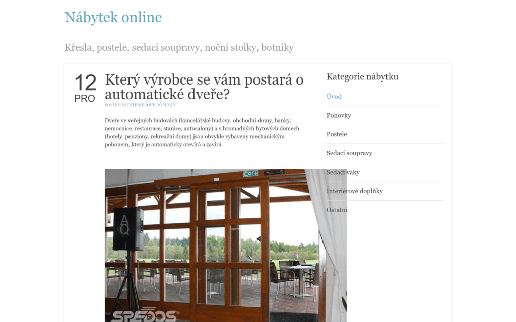 NABYTEK-STELLMAN.CZ Odkaz na webové stránky: http://www.nabytek-stellman.czKategorie webu: Pohovky, Postele, Sedací soupravy, Sedací vaky, Interiérové doplňky, Ostatní Autor: Mojmír Stellman Popis: Pokud vybíráte pohovku, postel nebo sedací soupravu, tento web je přesně pro Vás. Předchozí Následující
