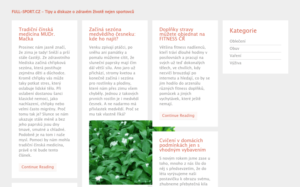 FULL-SPORT.CZ Odkaz na webové stránky: http://www.full-sport.czKategorie webu: Oblečení, Obuv, Vaření, Výživa, Zdraví Autor: Michael Voštěpa Popis: Web full-sport Vám přináší informace nejen o výživě a sportovním oblečení. Předchozí Následující