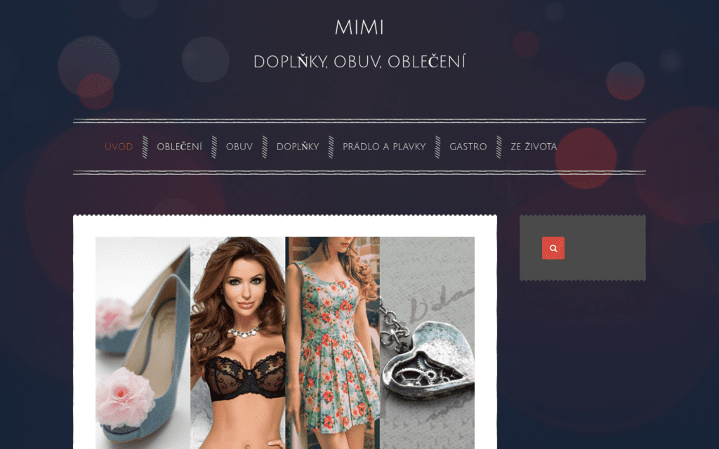 MIMI-OBCHUDEK.CZ Odkaz na webové stránky: http://www.mimi-obchudek.czKategorie webu: Oblečení, Obuv, Doplňky, Prádlo a plavky, Gastro, Ze života Autor: Alexandra Váchová Popis: Mimi-obchudek je vhodný zejména pro ženy, které se zajímají o módu a doplňky. Předchozí Následující