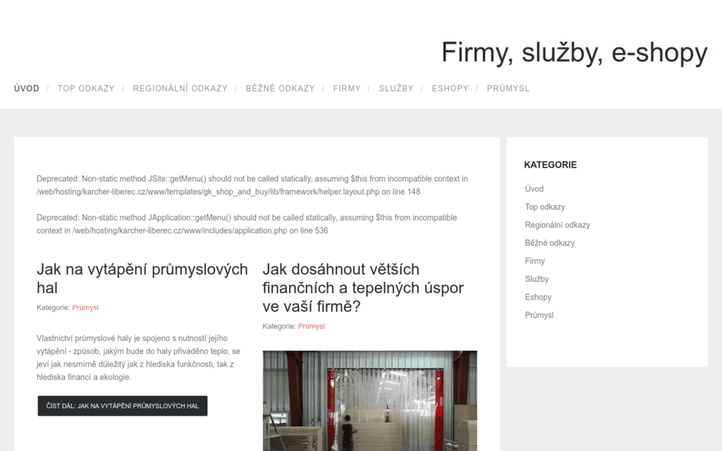 Top odkazy, Regionální odkazy, Běžné odkazy, Firmy, Služby, Eshopy, Průmysl
