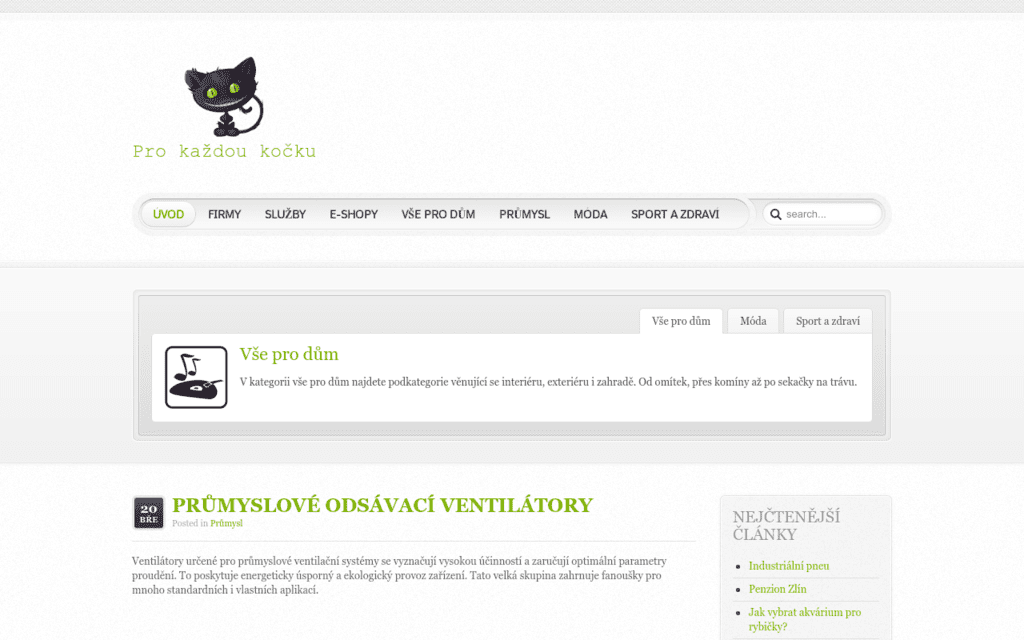 KOCICIOBCHUDEK.CZ Odkaz na webové stránky: http://www.kociciobchudek.czKategorie webu: Firmy, Služby, E-shopy, Vše pro dům, Průmysl, Móda, Sport a zdraví Autor: Kačka Drápková Popis: Skvělý magazín, kde naleznete vše co potřebujete. Od sportu až po módu a další. Předchozí Následující