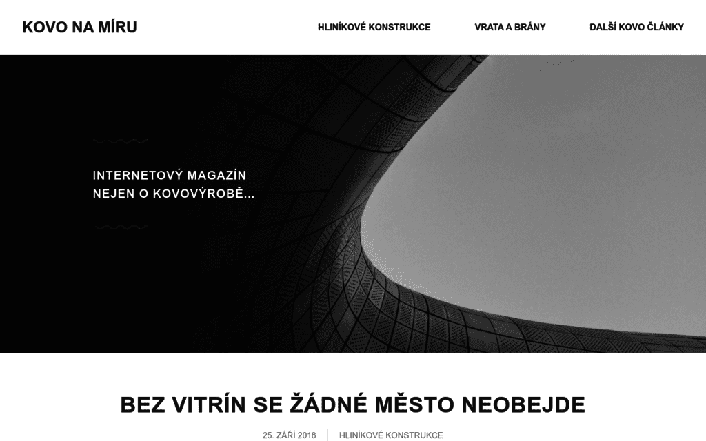 KOVONAMIRU.CZ Kategorie webu: Hliníkové konstrukce, Vrata a brány, Další kovo články Autor: Petr Dvořák Popis: V tomto magazínu se Petr zaobírá výrobky z kovu. Můžete zde nalézt hliníkové konstrukce, vrata brány, takže lze snadno se dozvědět více o těchto výrobcích. Předchozí Následující