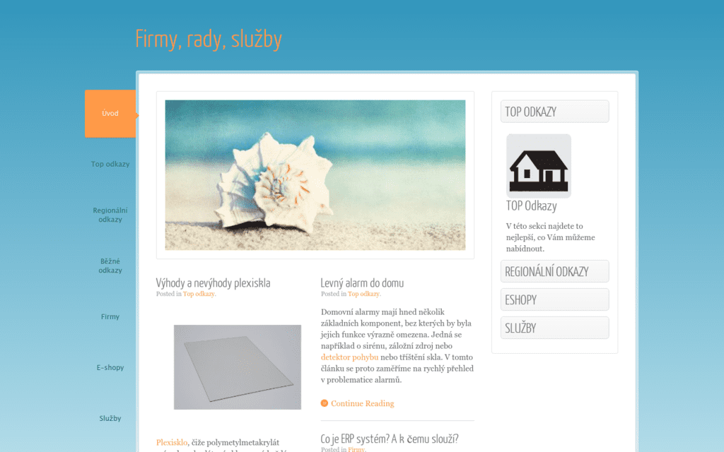 RADY-SLUZBY.CZ Kategorie webu: Top odkazy, Regionální odkazy, Běžné odkazy, Firmy, E-shopy, Služby Autor: Petr Poradil Popis: Na tomto webu je možné najít jak články o průmyslu, tak také i tipy na nákup. Předchozí Následující