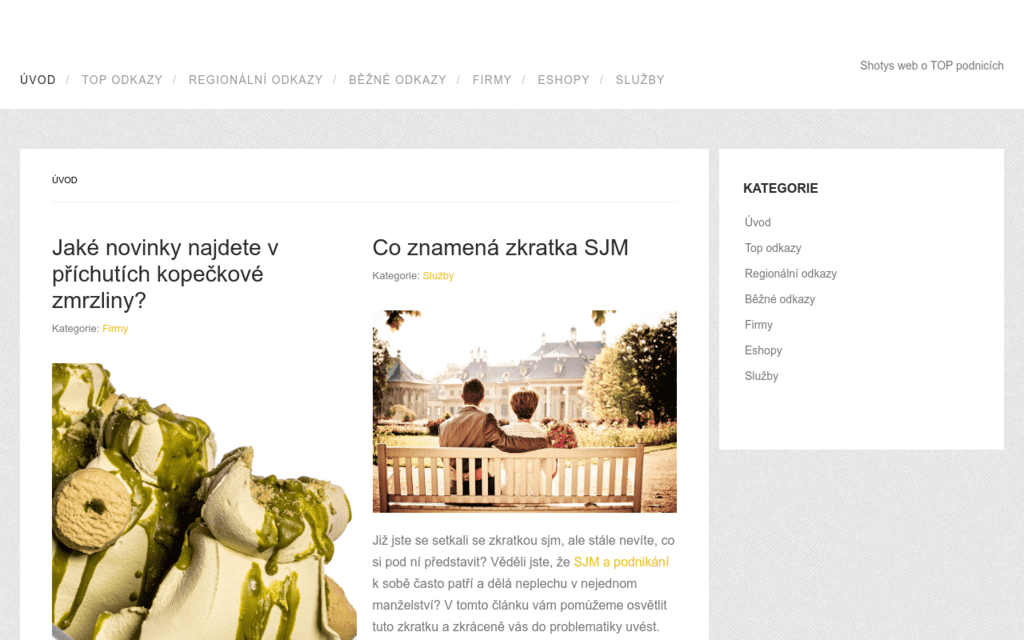 SHORTYS.CZ Odkaz na webové stránky: http://www.shortys.czKategorie webu: Top odkazy, Regionální odkazy, Běžné odkazy, Firmy, Eshopy, Služby Autor: Adéla Kratičková Popis: Ať už hledáte články o průmyslu nebo o čemkoli jiném, tady jste na správném místě. Předchozí Následující